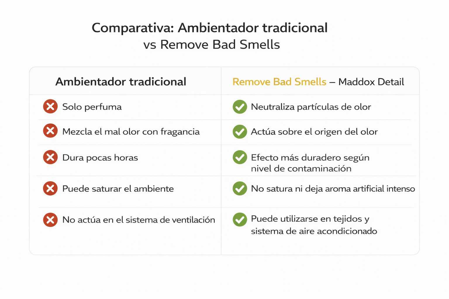 Esto lo convierte en una solución ideal para quienes buscan un interior limpio, fresco y cuidado, especialmente después de largos periodos de uso, presencia de mascotas o exposición al humo.